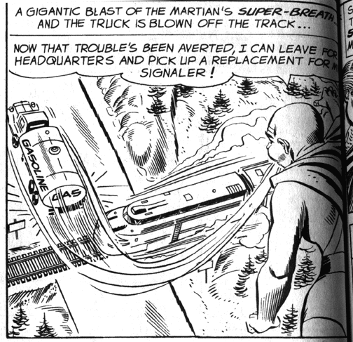 In BB#30, the Manhunter from Mars runs into a bit of trouble
