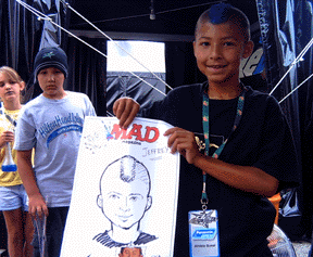 Fair & Expo Center drawing caricatures of attending skateboard,