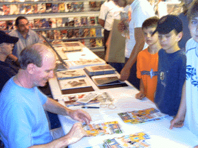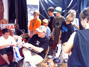 motocross and BMX fans in the MAD Magazine booth of the 2005 Dew Action Sports Tour.