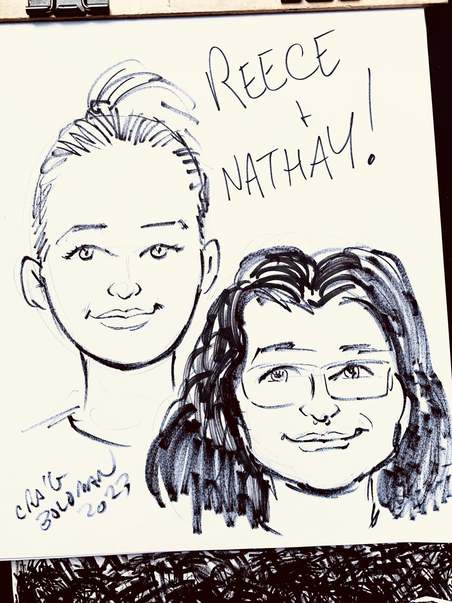 Here are some cartoon portraits I fid during a corporate holiday party. Information below, if you’re interested in having me do likewise at your own event.
