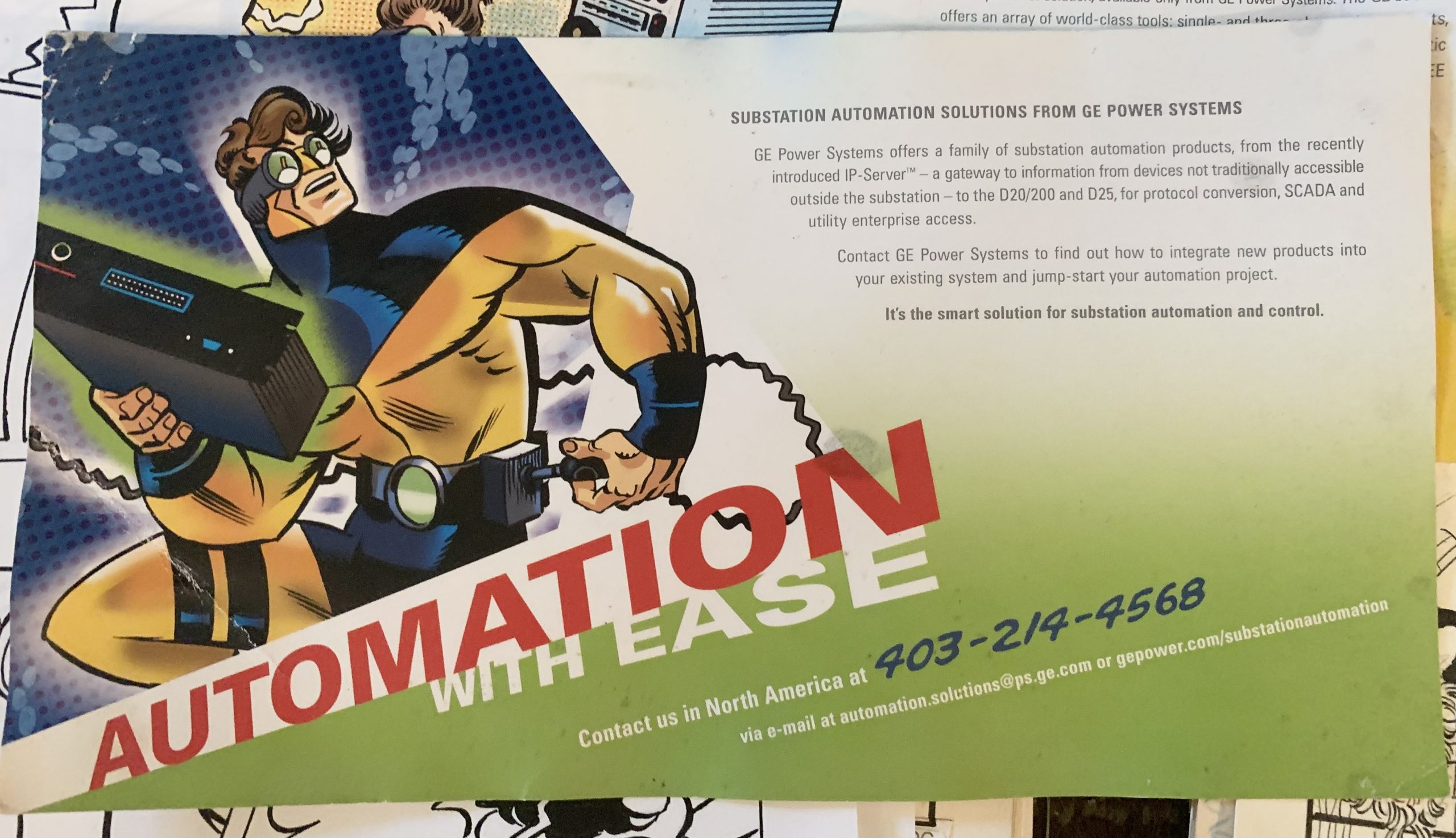 Monitoring With MuscleFor a change, I got to bring Stephen in on a project. I’d gotten involved with an ad agency that needed a super-hero character design for their latest ad campaign. Stephen designed and drew this hero, and I inked it. I can’t remember if I did the coloring or not.